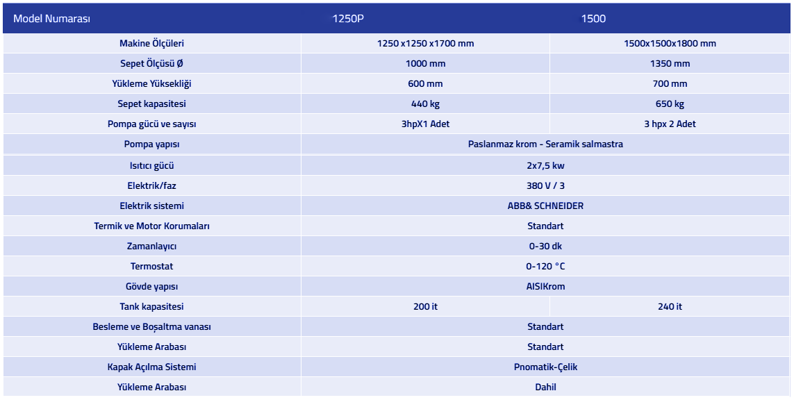 Döner Sepetli Sıcak Su Basınçlı Yıkama Makinaları-1250P-1500
