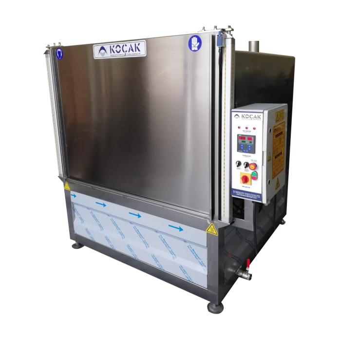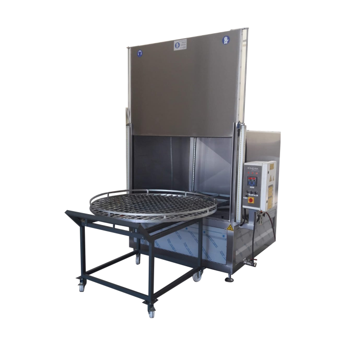 Paslanmaz döner bir platform üzerine kızaklı sistem ile yerleştirilen sepet üzerine yıkanacak olan parçalar yerleştirilmek üzere kapalı bir kabinde yüksek basınçlı deterjanla su ile dönerli sepetli yıkamaya tabi tutulur. Parça yapısına ve kirlilik oranına göre zaman ayarlı basınçlı su nozulları vasıtasıyla kirli yüzeylerdeki yağ, talaş, kir, atıkları değişik açılardan temizlemek üzere yıkama işlemi yapılır. Devir daim sistemi ile su filtre edilmek suretiyle, su, deterjan, elektrik ve zaman (iş gücü) tüketimini en az sarfiyatla parça yıkama tasarlanmıştır.
